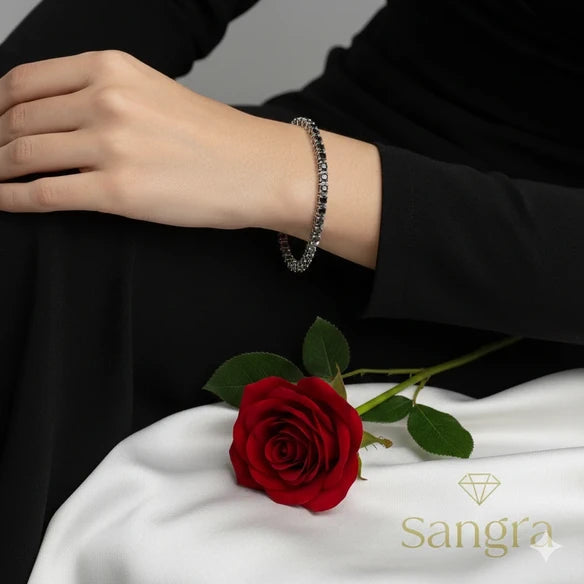 Bracciale Tennis in Acciaio con Zirconi Neri - 20 cm