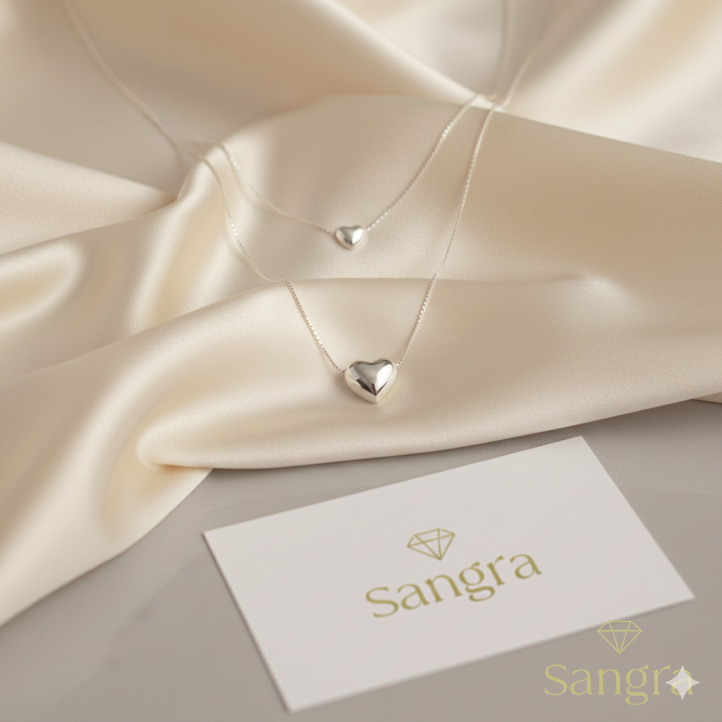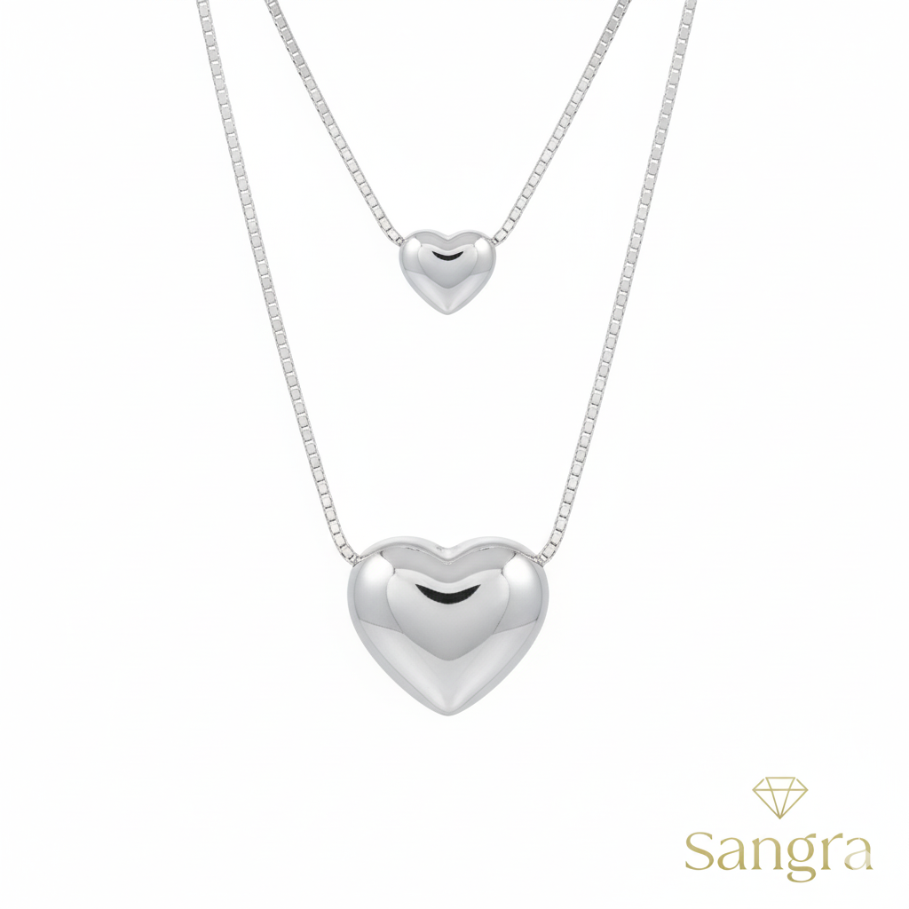 Collana Donna Doppio Cuore Bombato in acciaio inossidabile con design minimal e cuore gonfio stratificato.
